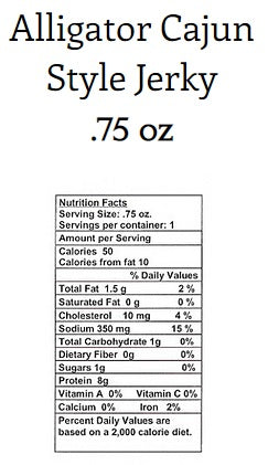 Alligator, beef, pork, salt, spices, brown sugar, onion powder, garlic powder, red pepper, celery powder.