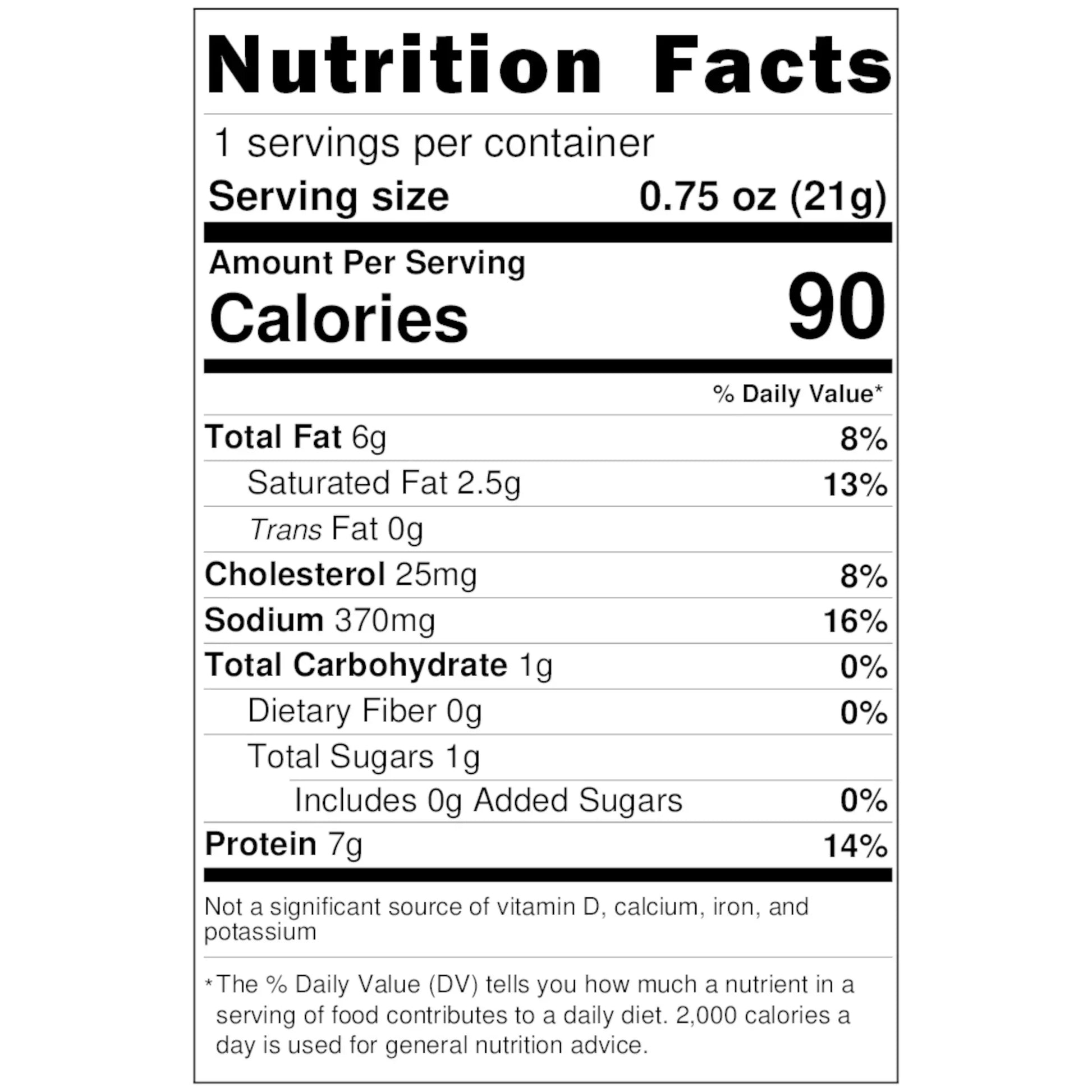 Ingredients: Beef, Buffalo, Salt, Brown Sugar, Spices, Chipotle Pepper, Garlic Powder, Celery Powder