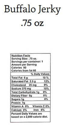Ingredients: Beef, Buffalo (American Bison), Salt, Spices, Brown Sugar, Garlic Powder, Celery Powder.