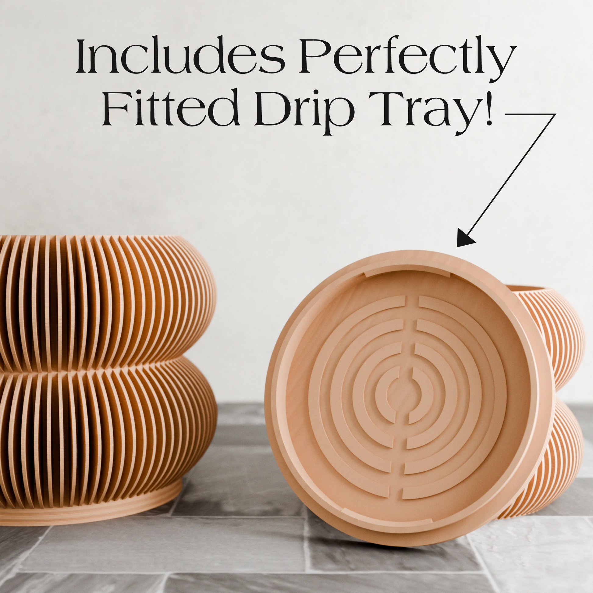 We designed the Double BUBBLES planter to bring a sense of playful elegance to your home, combining modern form with soft, flowing curves. Its unique, ribbed structure and stacked design create a bold yet refined look, making it the perfect statement piece to showcase your plants in style. The drip tray/saucer is custom-fitted and designed to perfectly complement the planter.