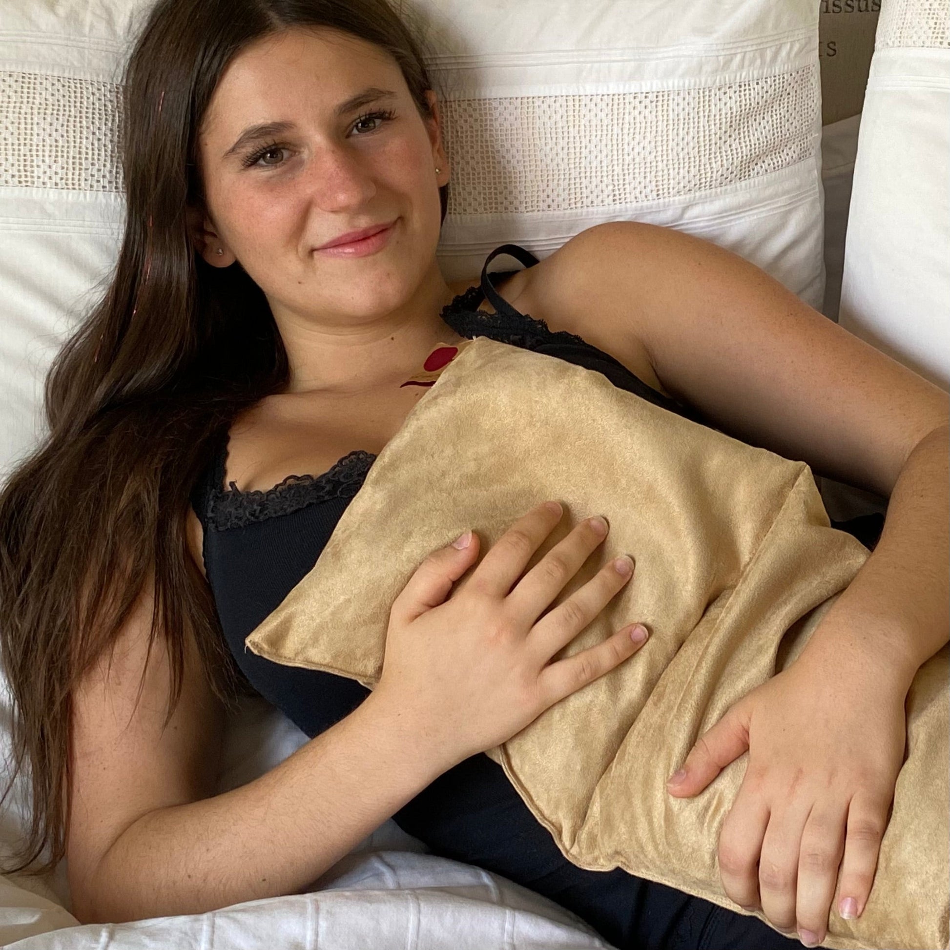 For warming larger areas in bed, relieving cold feet or for use behind the neck, shoulders or lower back. Each Double Square pillow measures 21” x 10.5” and holds approximately 4 lbs. of clean dried cherry pits.