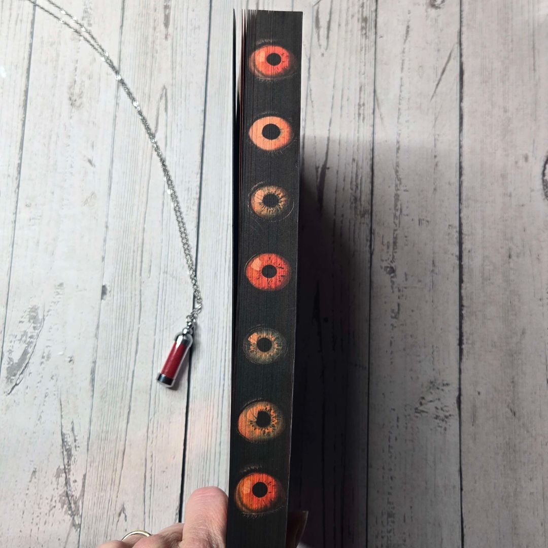 Sylas and Mina's love story comes to live with each page-turn as he watches you from both the beautiful sprayed edges, and a flip-book inside! Plus, there are beautiful full-page character images and bright orange foil on the cover, and orange pages inside with illustrations!