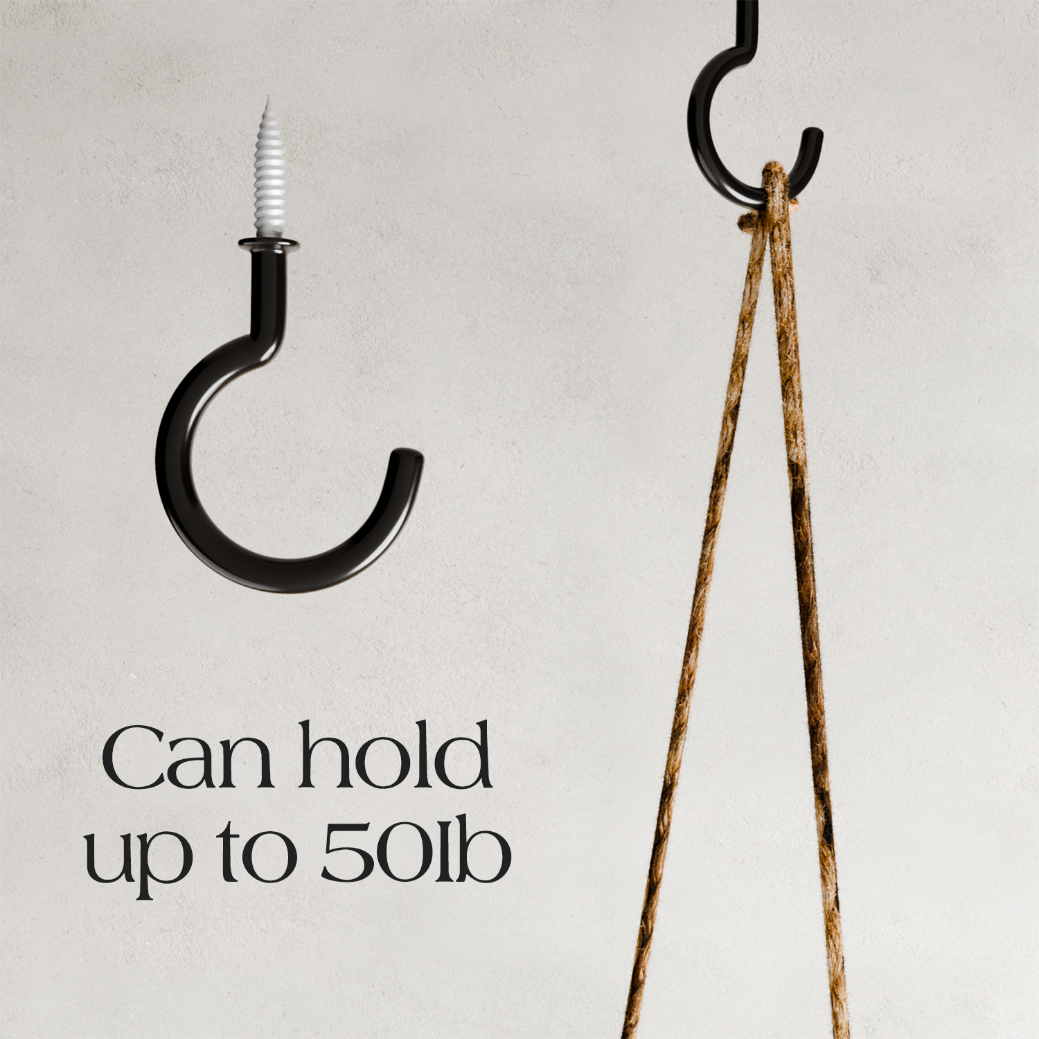 The pattern is designed to to mimic the elegant and satisfying look of a honeycomb, while offering a functional and adequate amount of space allowing for proper drainage of your plant. Included your package will be a screw-in black hook and a premium hemp cord. Installed into wood, you will be able to hold up to 50lbs with this setup. The Honeycomb hanging tray comes with everything you need to elevate your plants on your outdoor patio or indoor studio.