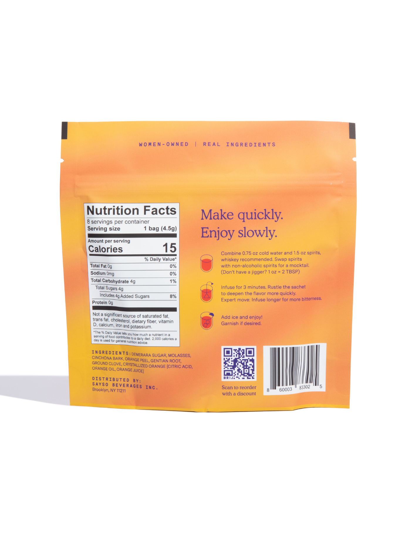 Each sachet has an expertly portioned blend of all-natural gentian root, cinchona bark, and orange. For a rich, jazz club-like flavor that’s perfect every time, steep in whiskey and cold water for 1 minute.