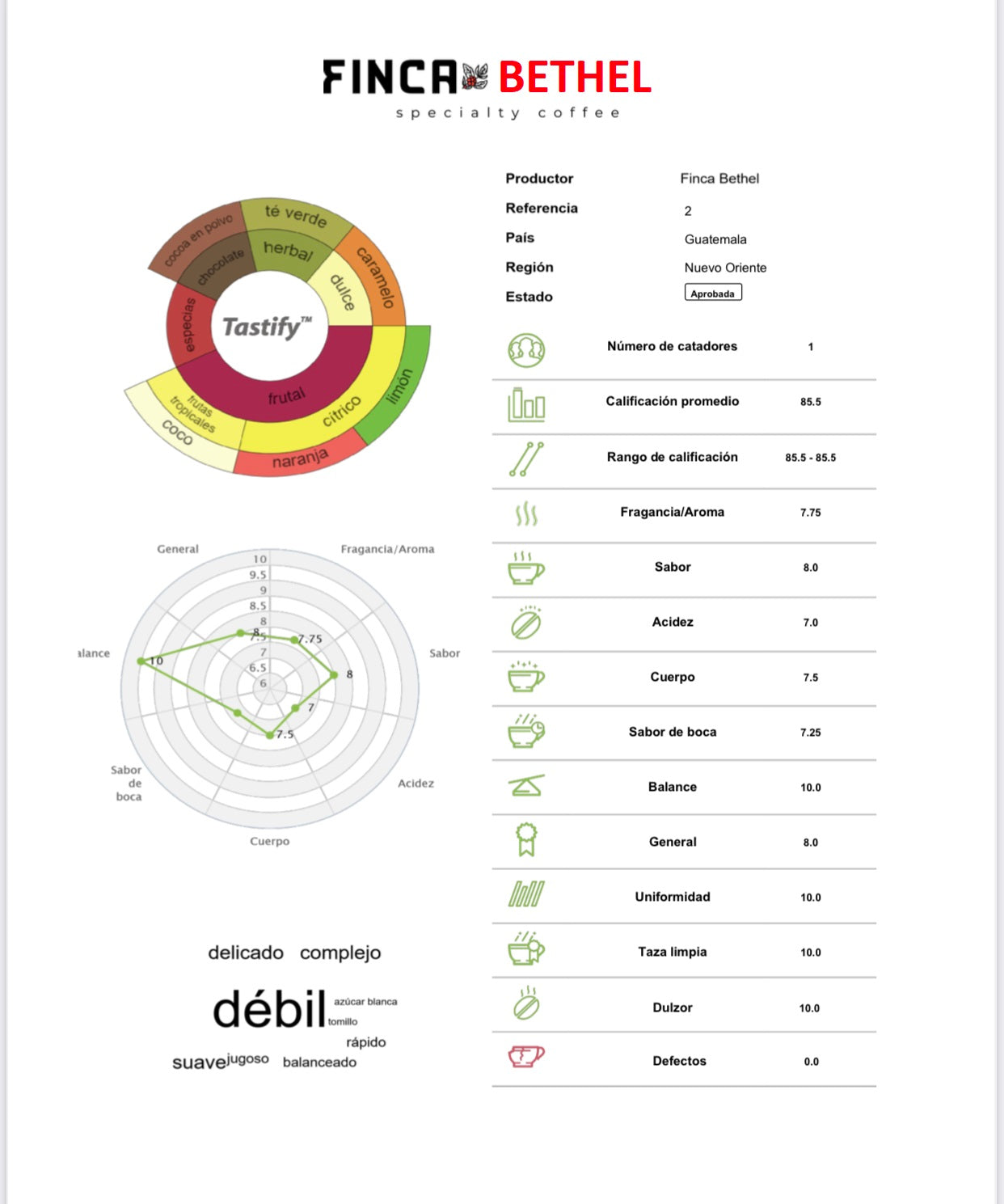 Bethel farm, our coffee growing region is located in eastern Guatemala along the border with Honduras. An ideal climate and clay and metamorphic volcanic soils result in high quality coffee with a distinct acidity and good body.