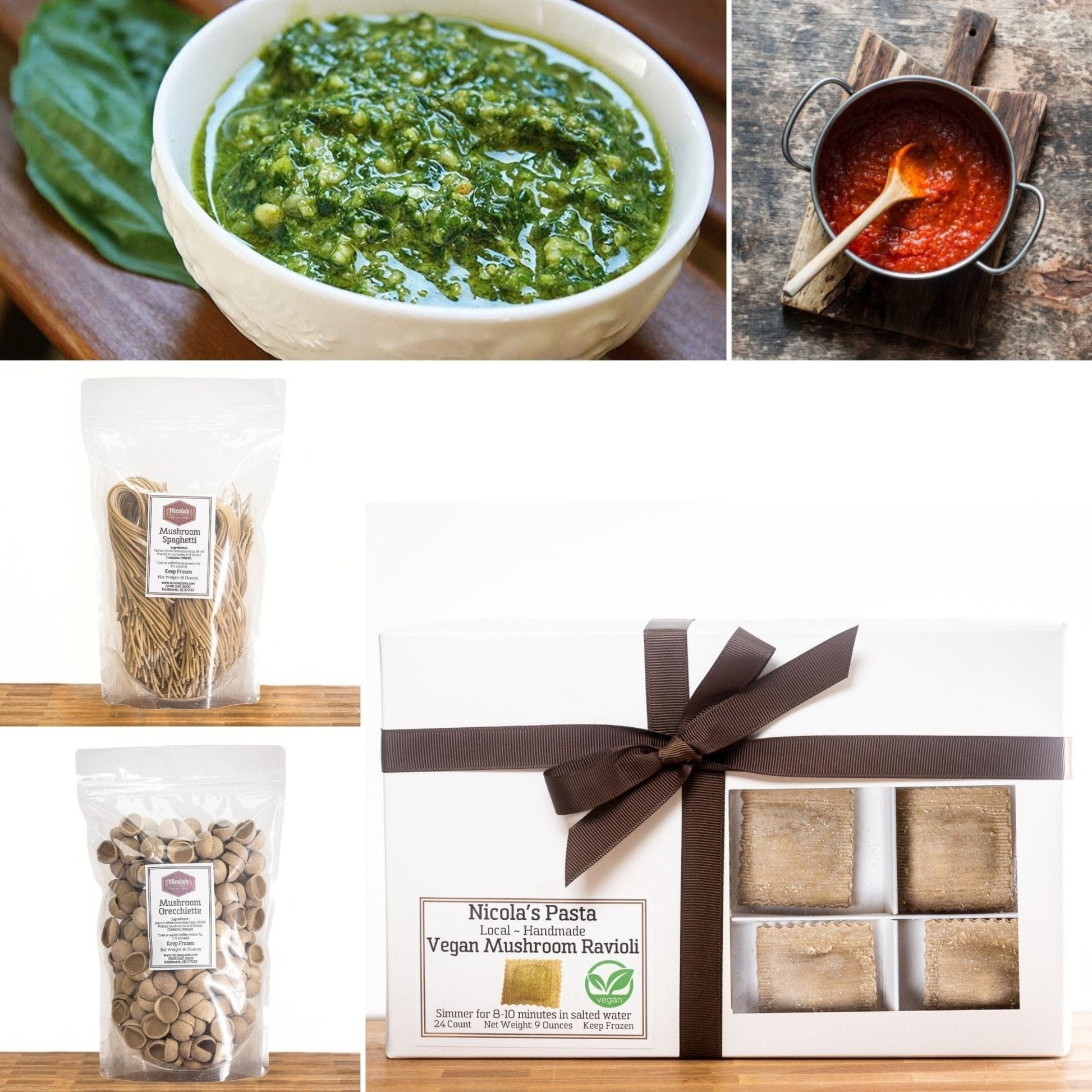 Infuse your moments of cheer and joy with the signature tastes of our handmade ravioli and pasta. We bring you our culinary delight — Vegan Mushroom Lover Basket — A combo of: