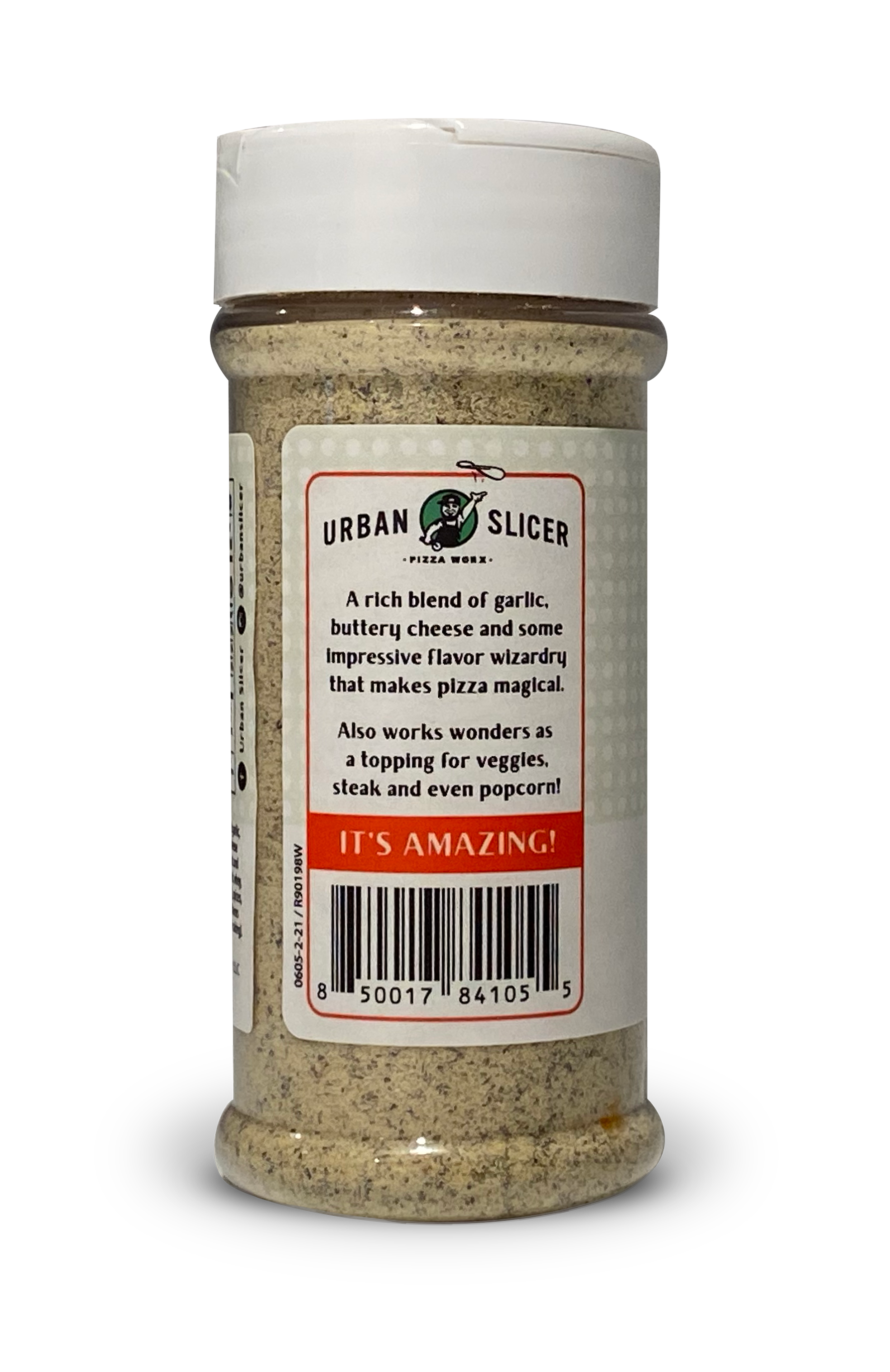 A rich blend of garlic, buttery cheese and some impressive flavor wizardry that makes pizza magical. Also works wonders as a topping for veggies, steak and even popcorn!